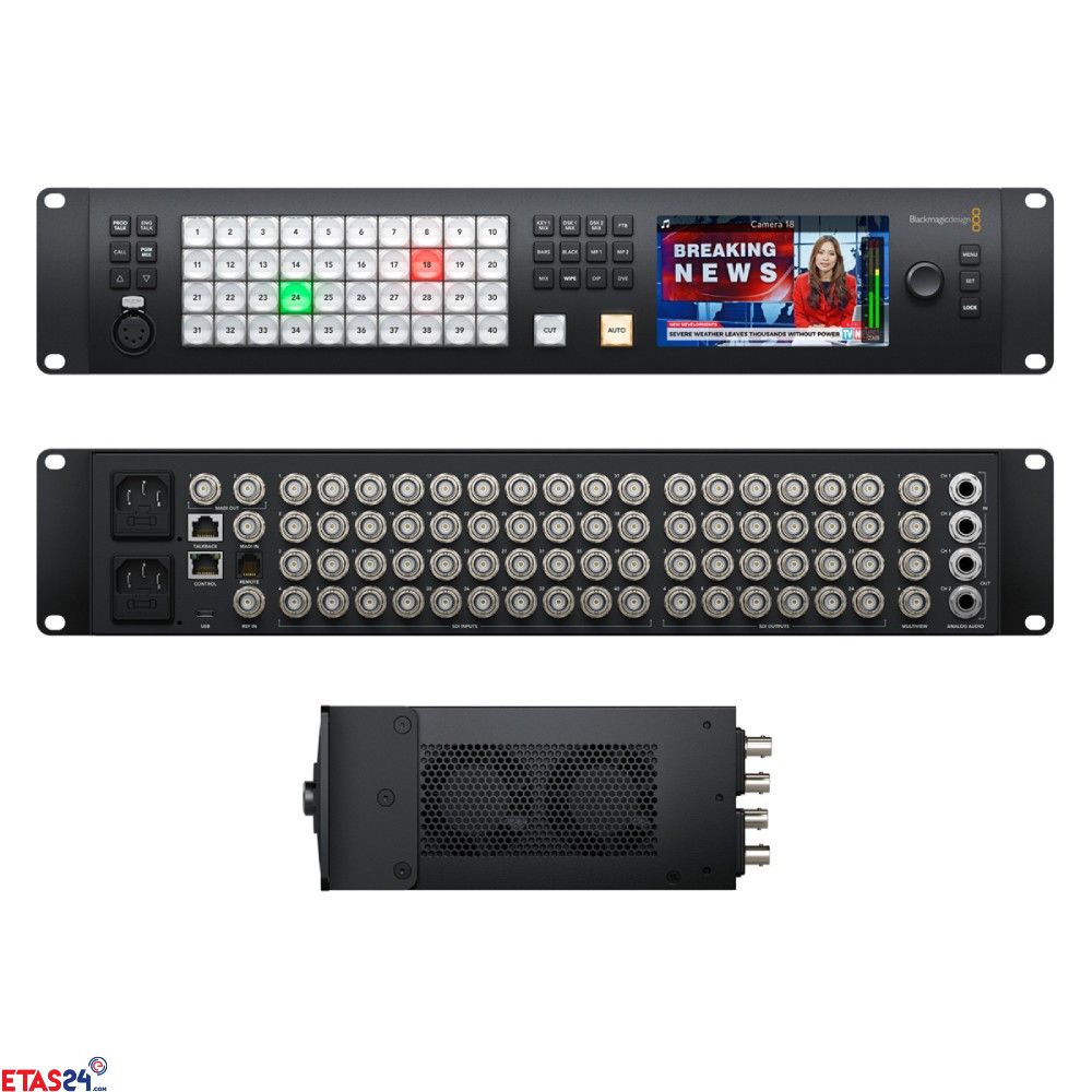 bietet 40 x 3G-SDI-Eingänge, 24 x 3G-SDI-Ausgänge, vier DVE, 16 ATEM Advanced Keyer, vier Multiviewer und zwei SuperSource-Prozessoren für insgesamt 12 DVE