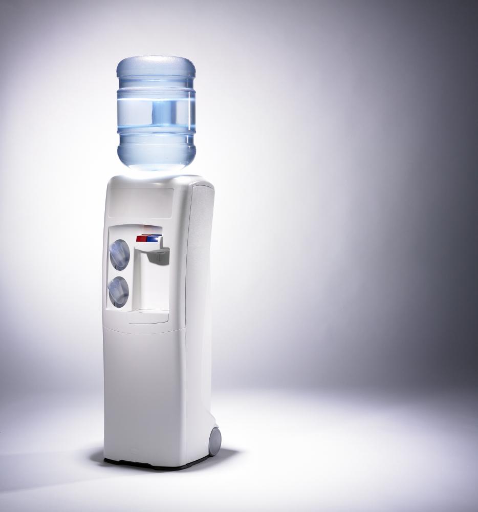 spendet auf Knopfdruck raumtemperiertes oder gekühltes Wasser,