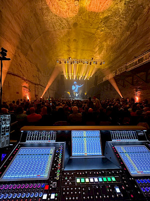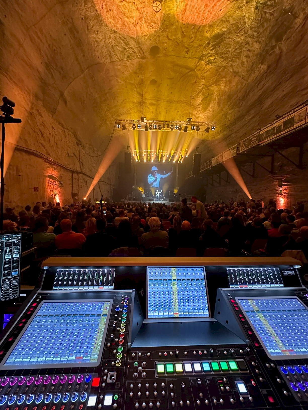 "Den Sound der Söhne Mannheims unter Tage adäquat auf das Publikum zu übertragen ist unser Ziel. Der Raum hallt – vor allem in den tiefen Frequenzen".